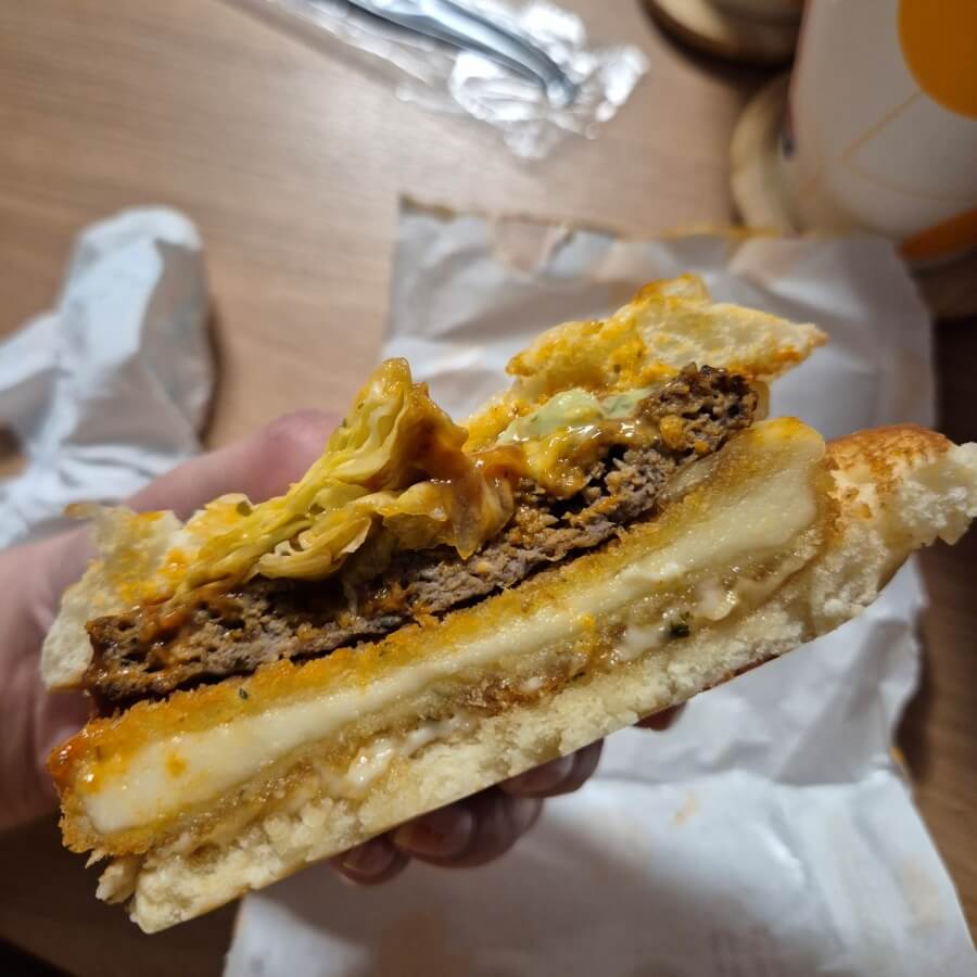 모짜렐라 치즈가 통으로 들어있어서 식감이 좋고 소스와 재료들의 전체적인 맛의 조화도 좋습니다. 치즈가 박힌 빵을 구워서 일반 버거 빵과 식감과 맛도 다릅니다. 맛은 좋지만 버거 단품 가격이 거의 9,000원에 육박해서 매우 비싸다고 생각합니다. 이 가격이면 맛있는 수제버거를 사 먹을 수 있기 때문에 프랜차이즈 버거집에서 이 돈을 내고 먹을 만큼 가성비 좋은 메뉴는 아닙니다. 한번 먹어본 것으로 만족합니다.